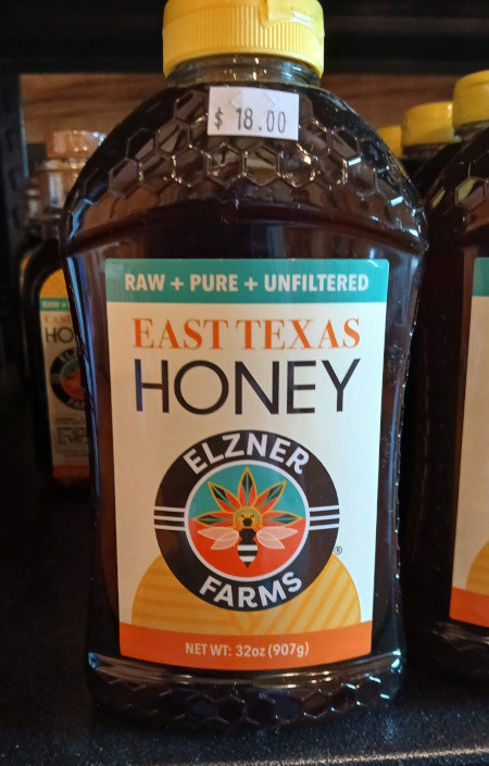 Local hives based around Jacksonville, TX. Raw, unfiltered honey in a plastic flip-top squeeze bottle.